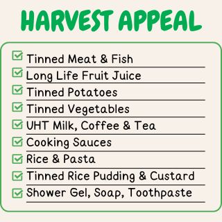 This Harvest we’re asking you to help support local people in crisis by collecting tinned and dried food for the Hertford, Ware & District Foodbank. Our most needed items are detailed here: